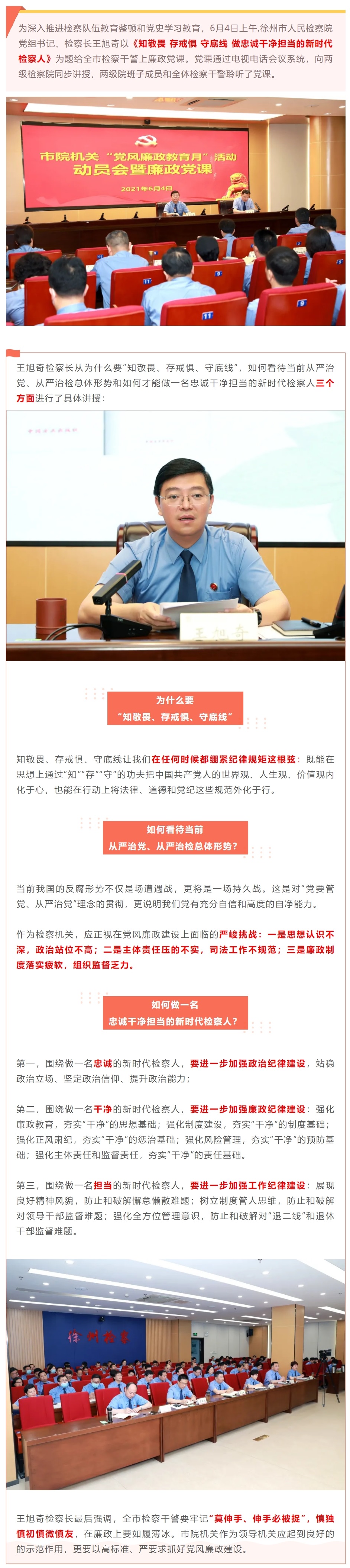 做忠诚干净担当的新时代检察人——王旭奇检察长向全市检察干警讲授廉政党课